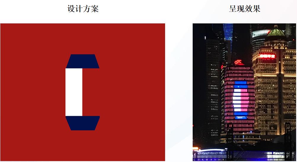 媒體形式:上?;ㄆ齑髲BLED坐落于陸家嘴濱江大道花旗大廈西立面,屏幕由5層到31層形成巨型的LED燈光幕墻,已視屏形式播放。