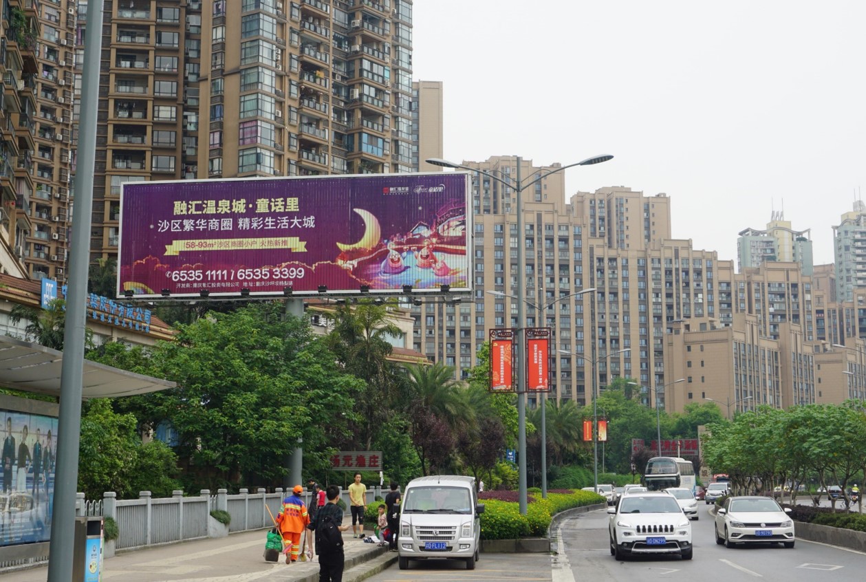 該廣告位位于沙坪壩區(qū)沙濱路,沙濱路是沙坪壩、渝中區(qū)、江北區(qū)三地往來的主要交通要道,該路段環(huán)境單純、地勢平坦、視野開闊;車流量大、廣告視覺沖擊力強、受眾目標(biāo)廣泛、廣告信息發(fā)布效果突出,是各企業(yè)、事業(yè)單位提高知名度和推廣產(chǎn)品的首選之地。