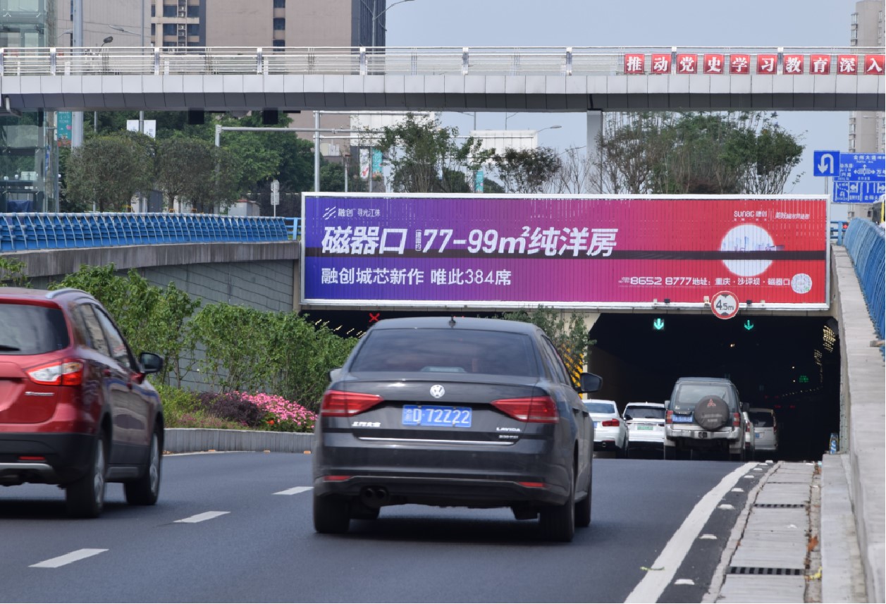 媒體位于星光大道重慶財富購物中心旁洪湖立交下穿道,附近積聚了精信中心、重慶金融中心、上丁工業(yè)園、國家稅務(wù)總局重慶市稅務(wù)局等大型shopping mail、高端寫字樓和政府重要機構(gòu)。媒體位于下穿遂道兩端,離地近,面積大,可雙向覆蓋北區(qū)高端居住區(qū)至照母山科技創(chuàng)新城上下班核心消費人群