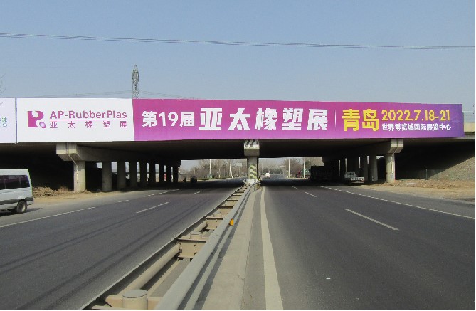 媒體形式:噴繪廣告(LED燈照明)河套樞紐S397省道橋體(機(jī)場(chǎng)通往青島市區(qū)方向);