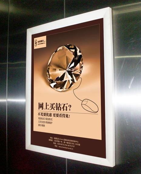 電梯框架廣告是指電梯轎廂內(nèi)的廣告框,一般用來(lái)安裝廣告海報(bào),起到廣告作用。電梯廣告框架是生活中最常見(jiàn)的電梯廣告類型,也最為普遍的類型,通常在商場(chǎng)、小區(qū)電梯內(nèi)是常??梢钥匆?jiàn)的一種廣告方式。在投放此類廣告商一定要在海報(bào)設(shè)計(jì)上富有創(chuàng)意,采用多圖少字的設(shè)計(jì),信息量充足,這樣才能達(dá)到傳播的效果。