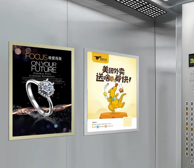 電梯框架廣告是指電梯轎廂內(nèi)的廣告框,一般用來安裝廣告海報(bào),起到廣告作用。電梯廣告框架是生活中最常見的電梯廣告類型,也最為普遍的類型,通常在商場(chǎng)、小區(qū)電梯內(nèi)是常常可以看見的一種廣告方式。在投放此類廣告商一定要在海報(bào)設(shè)計(jì)上富有創(chuàng)意,采用多圖少字的設(shè)計(jì),信息量充足,這樣才能達(dá)到傳播的效果。