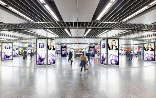 | 創(chuàng)意媒體-南京地鐵新街口站商業(yè)層中站廳社區(qū)站廣告 線路:1、2號線 組合形式?:包柱4根(方形柱體燈箱) 媒體費(元/4周):800,000 制作方式:UV寫真燈片 制作費(元/次):29,440 |