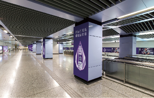 | 創(chuàng)意媒體-南京地鐵仙林中心站社區(qū)站廣告 線路:2號線 組合形式 :墻貼2面+柱貼19面 媒體費(元/4周):200,000 制作方式:寫真噴繪 制作費(元/次):35,631 |