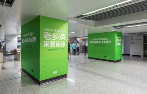 | 創(chuàng)意媒體-南京地鐵邁皋橋站社區(qū)站廣告 線路:1號線 組合形式 :站廳包柱5根+柱貼4面+6封看板8塊+梯頂3塊 媒體費(元/4周):220,000 制作方式:寫真噴繪 制作費(元/次):27,241 |