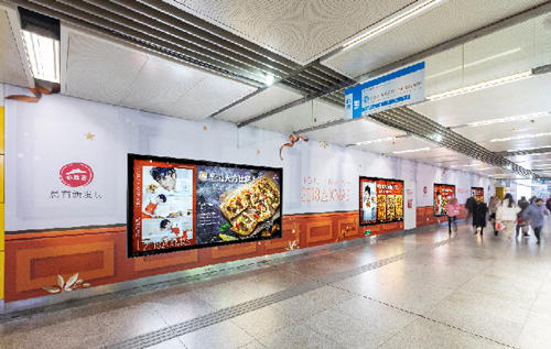 | 創(chuàng)意媒體-南京地鐵新街口站8號品牌通道廣告 線路:1、2號線 組合形式:73.34㎡ 墻貼 媒體費(元/52周):600,000 制作方式:UV寫真燈布 制作費(元/次):22,002 |