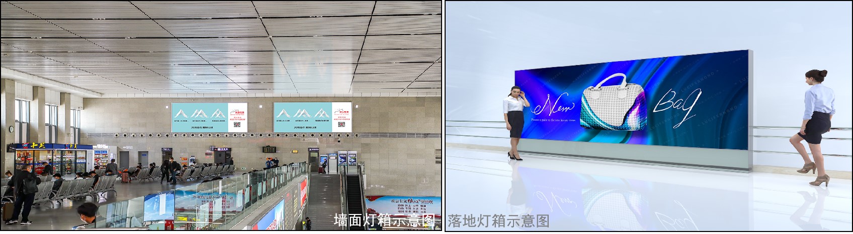 墻面燈箱、落地?zé)粝?mdash;—候車廳/進(jìn)站大廳/出站廳