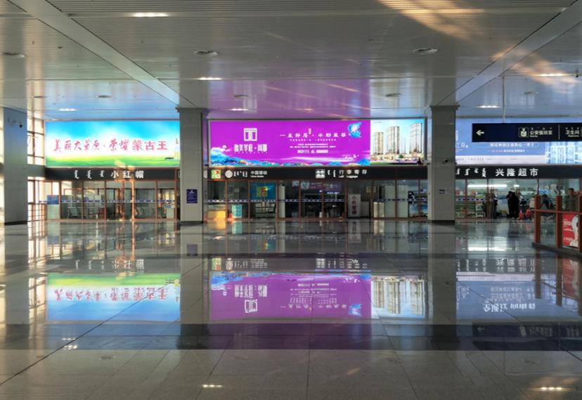 通遼站北進(jìn)站一樓大廳扶梯旁燈箱廣告