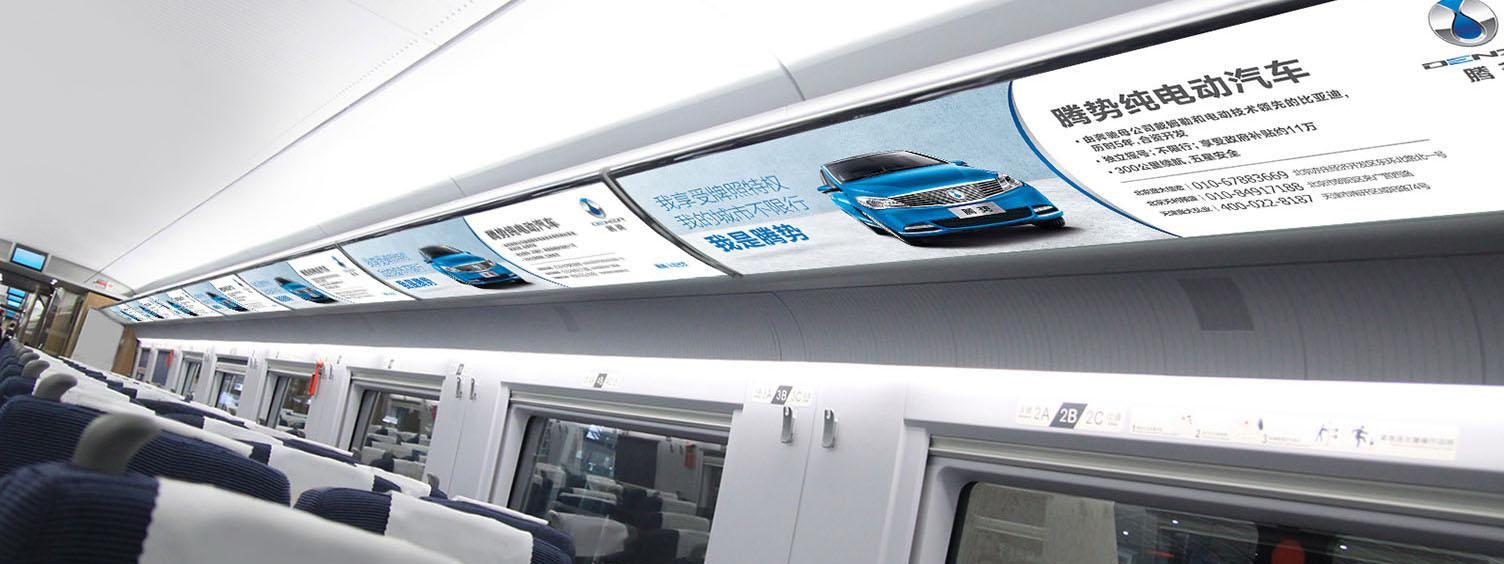 位于所有高鐵車(chē)廂內(nèi)行李架下方,對(duì)稱(chēng)發(fā)布,氣勢(shì)磅礴,視覺(jué)沖擊力強(qiáng),無(wú)論坐、立、行,都能有絕佳的視覺(jué)效果,利于品牌整體性展示。