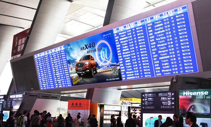 高鐵廣告站內(nèi)媒體主要以高鐵大牌廣告、高鐵led大屏廣告、高鐵燈箱廣告、高鐵LCD廣告刷屏機(jī)為主,其中又以高鐵led屏廣告最受廣告主青睞。