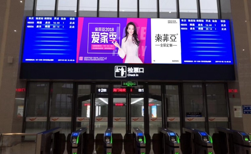 海門高鐵站led屏廣告,海門站高鐵大屏廣告,海門站高鐵led廣告