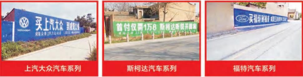 3、更貼近銷售終端。墻體廣告是拓展農(nóng)村市場(chǎng)的最有力的武器,墻體廣告到達(dá)的地方,就有該產(chǎn)品在該區(qū)域熱銷的場(chǎng)面,可以是田間地頭,可以是農(nóng)家小院,也可以是規(guī)范的門市,墻體廣告是最貼近消費(fèi)終端的廣告形式。