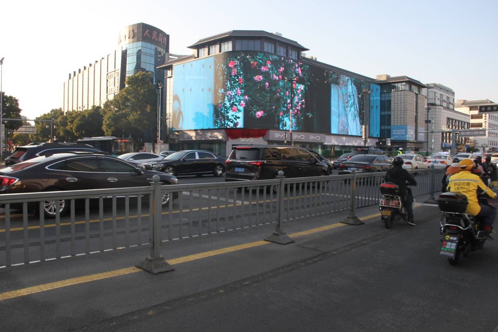 該屏位于蘇南第一商圈——蘇州觀前街核心位置,處蘇州黃金主干道南北向人民路、東西向干將路交匯,輕軌黃金干線一號線與四號線交匯,緊鄰的景德路是串聯(lián)觀前商圈與石路商圈的最便捷通道,人車流量巨大,是蘇州的網(wǎng)紅地標屏。