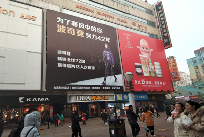 | 青島臺東步行街大牌 媒體形式:外打燈墻體大牌(鋼結(jié)構(gòu)噴繪大牌) 媒體位置:青島臺東步行街當(dāng)代商城東側(cè)墻體 區(qū)域?qū)傩裕呵鄭u臺東商圈、步行街 媒體規(guī)格:25m(w)×8m(h)=200㎡ 交通流量:38萬人次/天 亮燈時間:4小時/天 媒體刊例:18萬/月 媒體簡介:此媒體位于步行街中心路口,是進(jìn)入步行街的必經(jīng)之路,視覺效果絕佳。臺東步行街現(xiàn)為“全國著名商業(yè)街”、”國家AAA景區(qū)”,是青島市人流量最大的地段,最為繁華的商業(yè)中心,最高峰日客流量達(dá)60萬人次,沃爾瑪、利群、萬達(dá)、萬千百貨、當(dāng)代商城、國美、蘇寧、千川百貨、臺東服裝城、電子產(chǎn)品城、多個手機賣場等大型商場分布于此,是人們購物、休閑的良好場所,也是外地來青旅游人員匯聚之地。 |