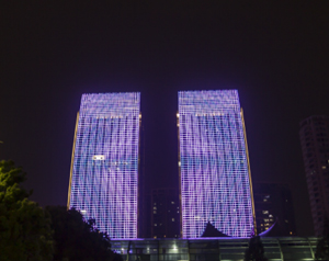 溫州地標(biāo)物華天寶—發(fā)展大廈立面雙子屏led廣告