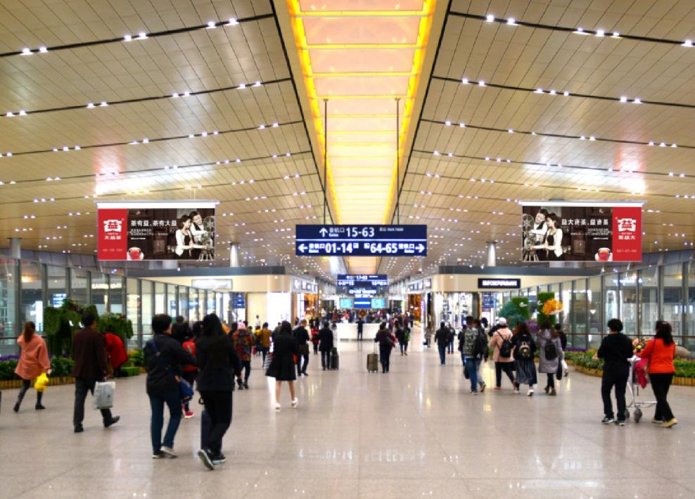 F2層國內(nèi)到達(dá)東、西指廊墻面燈箱廣告