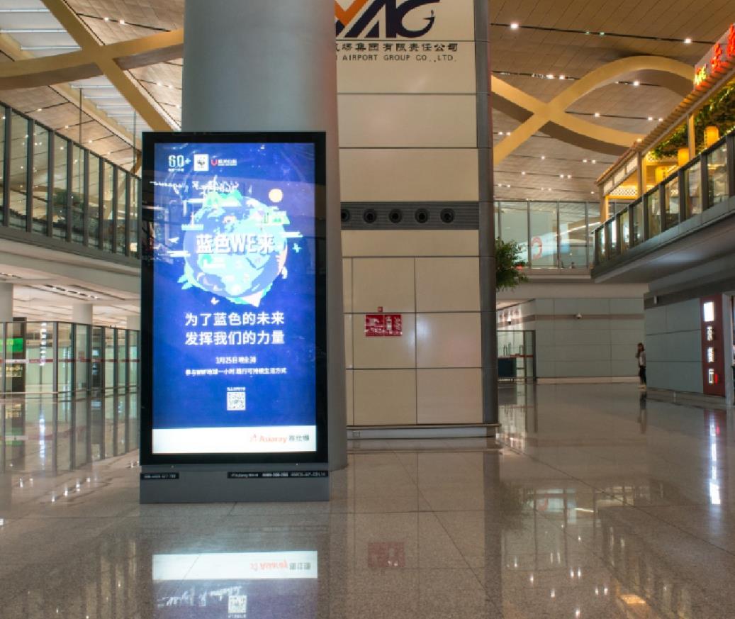 F2層國內(nèi)出發(fā)西指廊候機(jī)區(qū)巨型站立式燈箱廣告