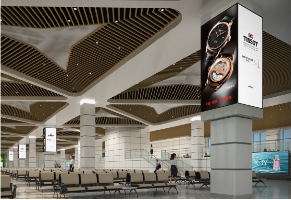 候機廳是旅客必須經(jīng)過且停留 時間較長的區(qū)域,人流密集,媒體連續(xù)排列,風(fēng)格統(tǒng)一,規(guī)格整齊。