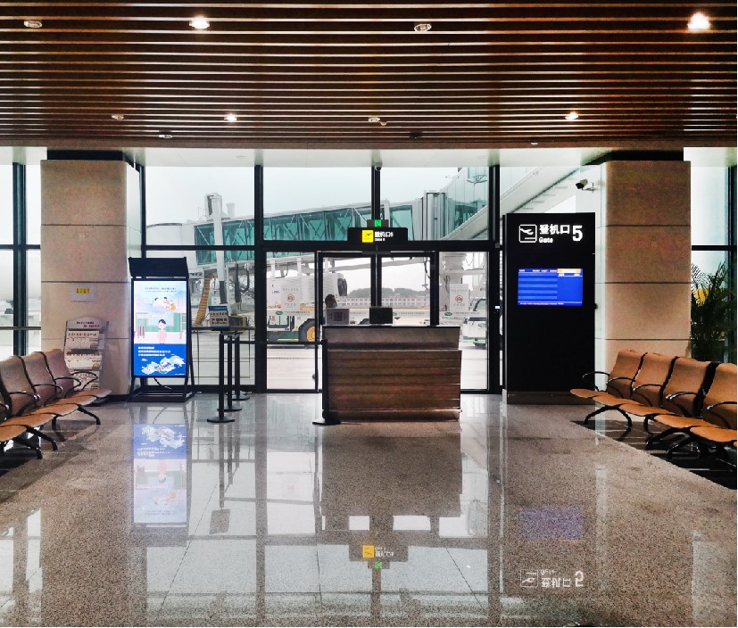 媒體位置:惠州機場安檢入口上方