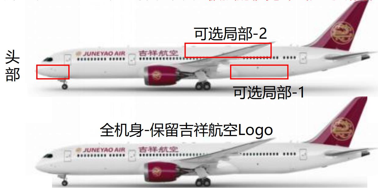 飛機(jī)噴涂廣告:把企業(yè)的LOGO、形象圖案以及廣告語(yǔ)噴涂在吉祥航空班機(jī)的飛機(jī)頭部或機(jī)身。