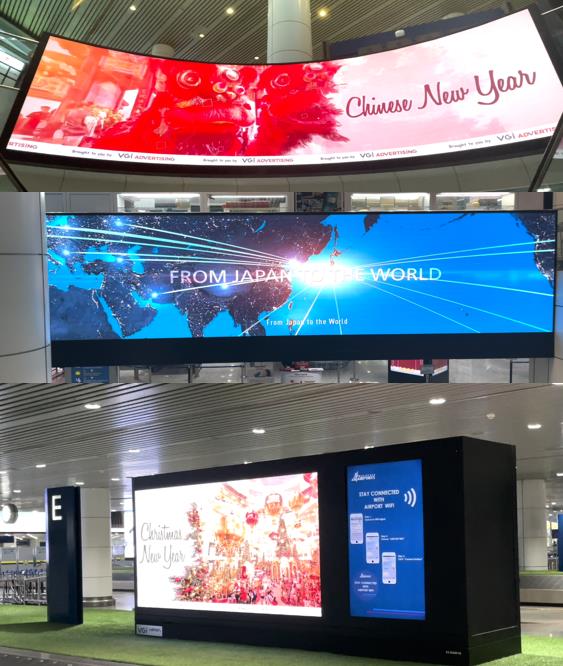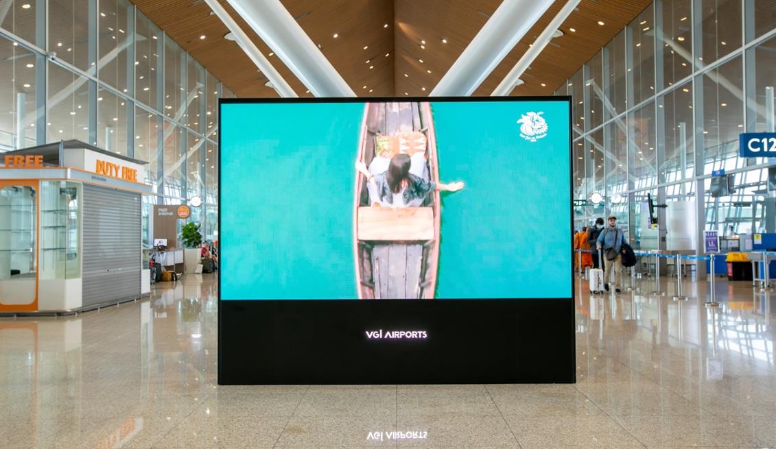 巨大的屏幕,100%的到達(dá)旅客在行李傳送帶前等待和進(jìn)入著陸大廳時(shí)都可以看到