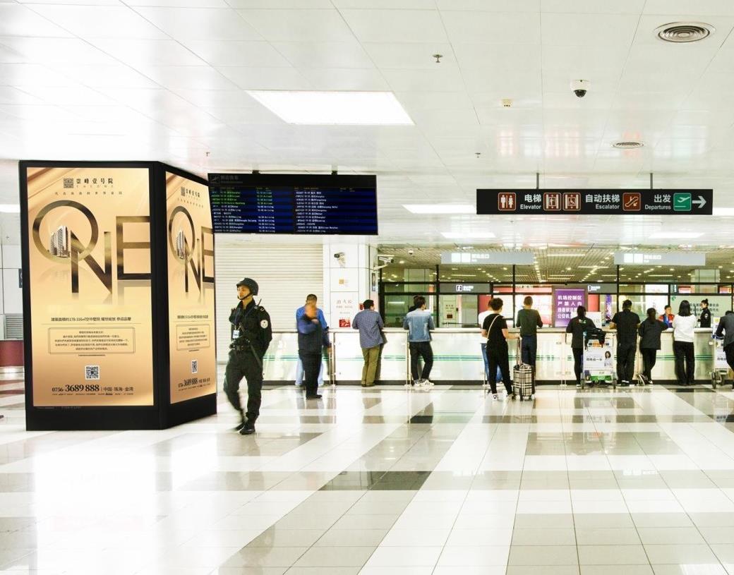 珠海金灣機(jī)場(chǎng)廣告-一層到達(dá)迎賓廳 | 包柱燈箱廣告