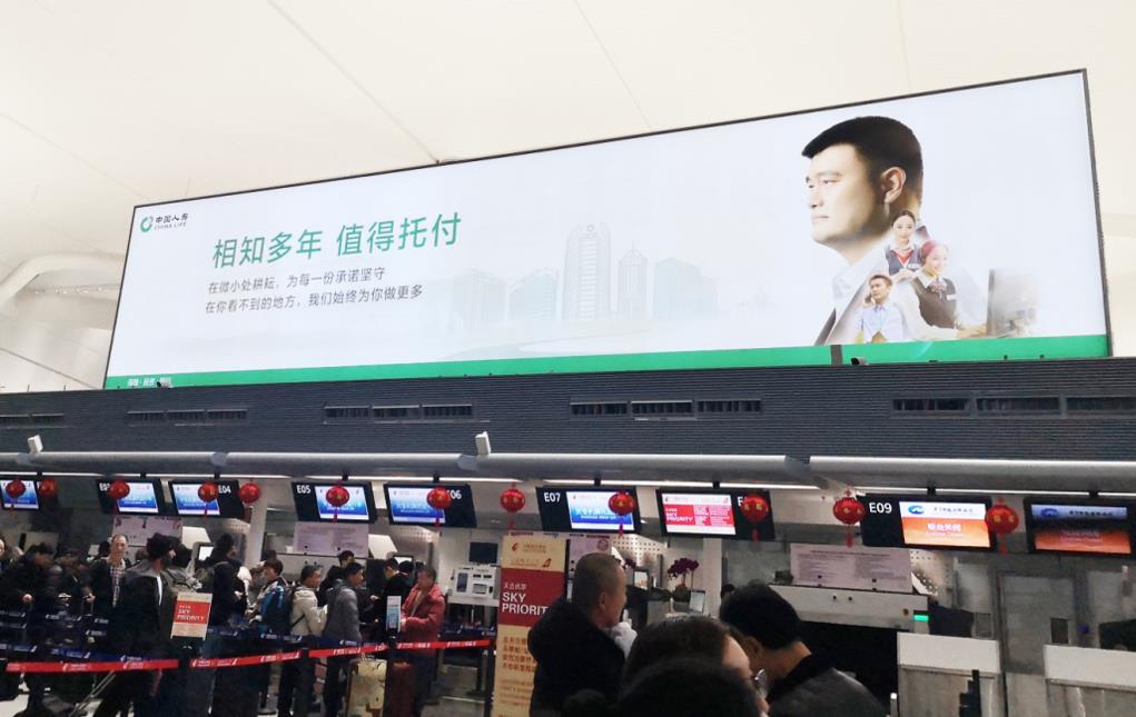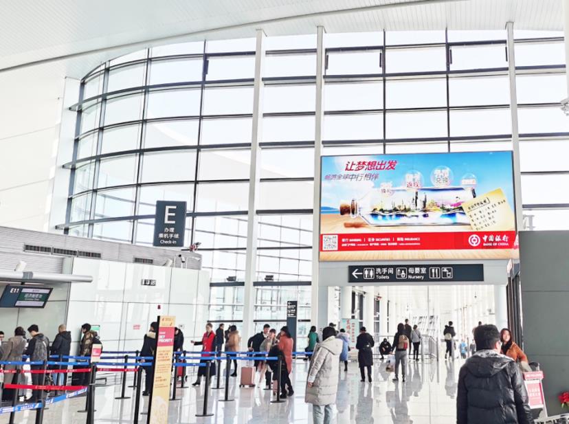 媒體位置:T2國內(nèi)出發(fā)安檢區(qū)域值機(jī)島后方墻面