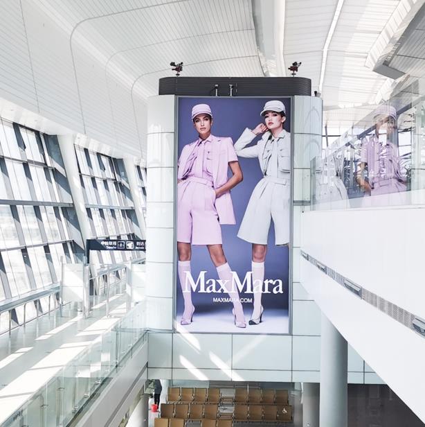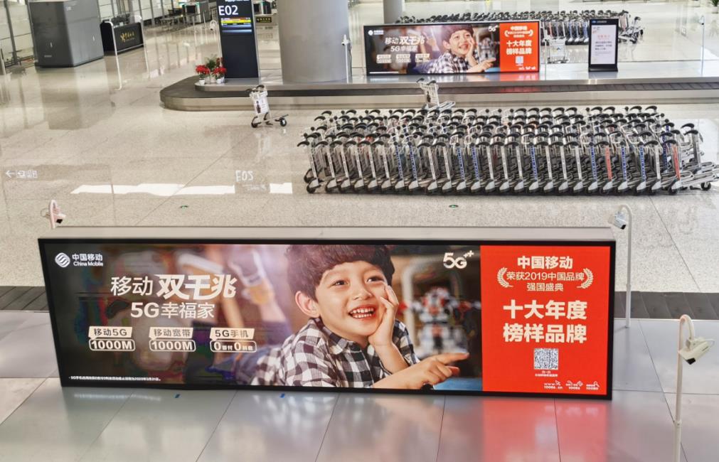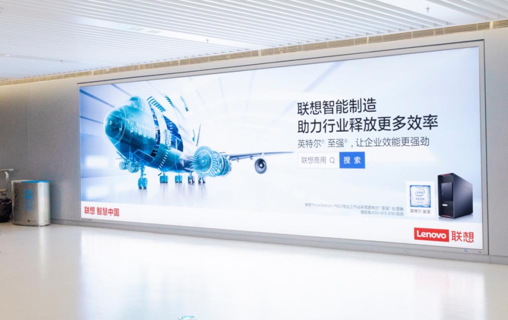 T2國內(nèi)出發(fā)安檢通道右側(cè)墻體上方led大屏廣告
