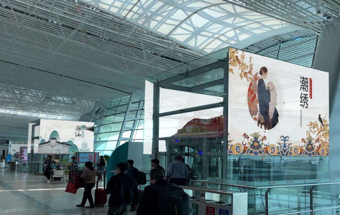 揭陽潮汕機場到達侯客大廳包柱燈箱廣告?