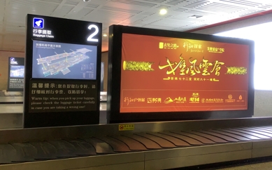 一層行李廳,燈箱,共2塊,雙面,外框尺寸4m*2.5m*2面,畫面尺寸3.8m*2.3m*2面。