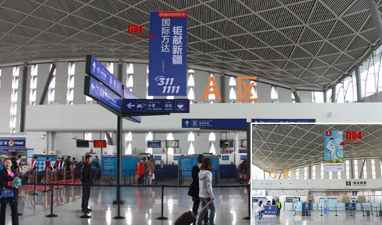 T3國內(nèi)國際出發(fā)辦票大廳 吊旗廣告