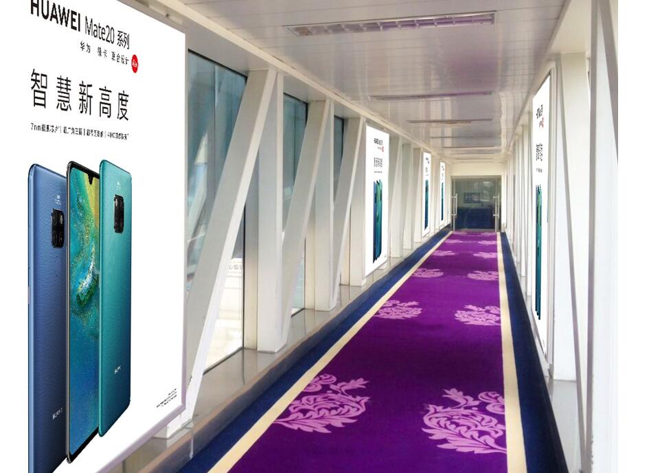 媒體位于T1航站樓5個(gè)廊橋移動端,100%覆蓋所有國內(nèi)出發(fā)到達(dá)旅客。