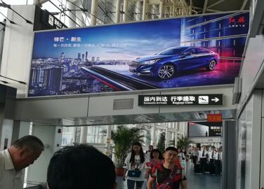 | 濟南機場出發(fā)區(qū)廣告--國際出發(fā)候機大廳及到達通廊正上方 | |
