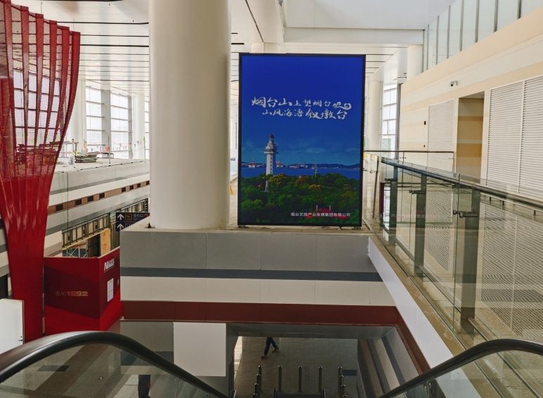 煙臺(tái)機(jī)場(chǎng)廣告-國內(nèi)到達(dá)行李提取大廳下電梯正迎面led廣告