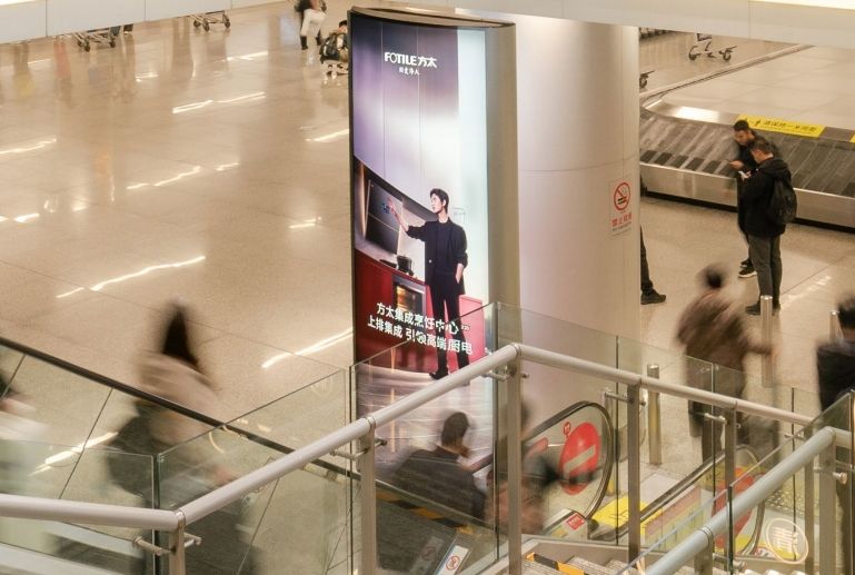 旅客與媒體近距離接觸,四周環(huán)境干擾少,空間開闊明亮,品牌印象深刻。