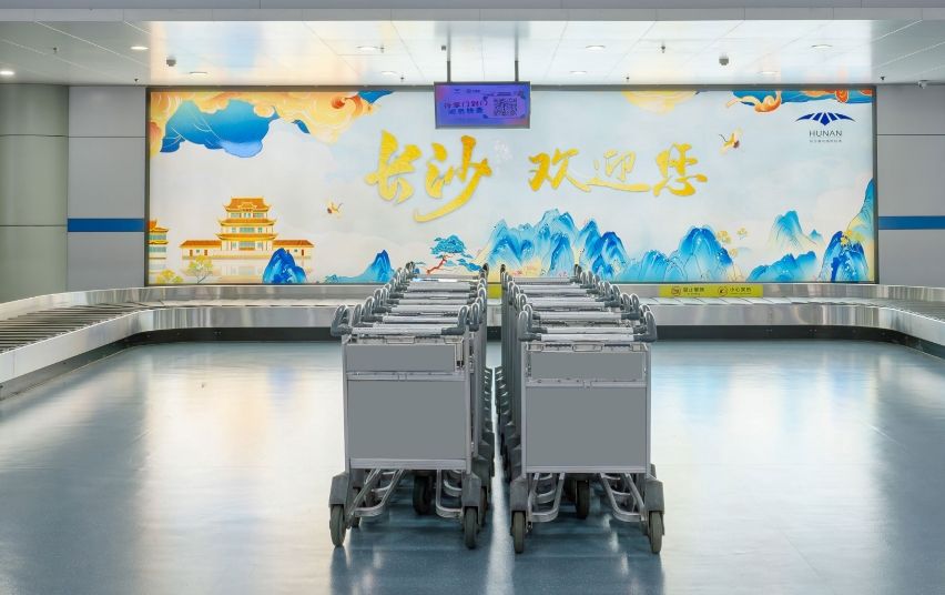 長沙黃花機場廣告 – ?安檢區(qū)內(nèi)小型行李手推車廣告