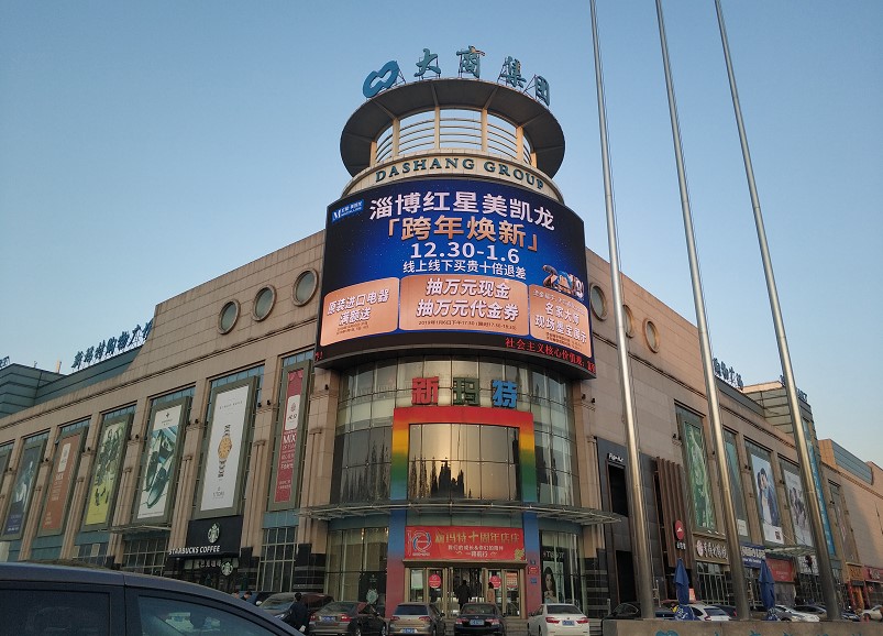 媒體優(yōu)勢(shì):位于淄博市柳泉路與共青團(tuán)西路交匯處茂業(yè)天地樓體,大屏在周邊區(qū)域里面屬于獨(dú)有媒體資源,且展示效果好,車(chē)流量巨大,受眾效果好。