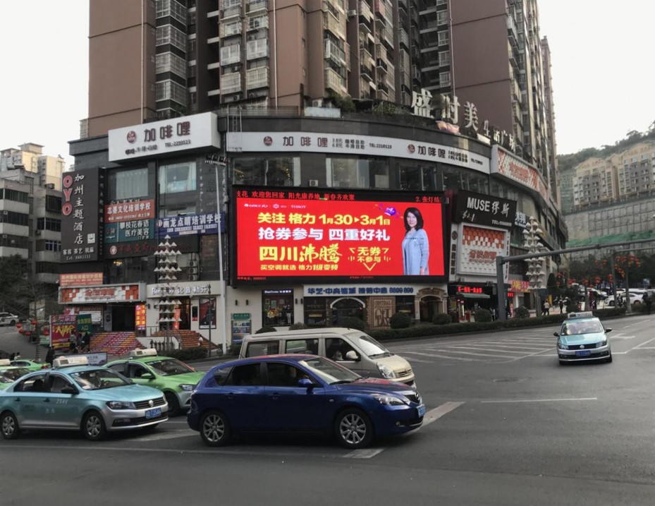 該媒體采用全彩LED電子顯示屏,音質(zhì)、音效等都達(dá)到極佳的效果,屏體面積96㎡日流量可達(dá)30萬人次左右,地處市區(qū)內(nèi)交通主干道(臨園路東段與涪城路交匯處)、商業(yè)中心車流不斷。