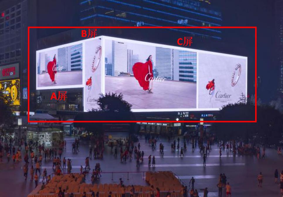 | 媒體位置 :?重慶市渝中區(qū)大坪時代天街B館新世紀(jì)外墻? 規(guī) ? ? ? ?格:?18.5m*8.46m=157㎡? 開關(guān)機(jī)時間:?10:00 — 22:00? 刊 ?例 ?價:15秒240次/天;40萬/月?? 人車流量 :?30萬人次/天;40萬車次/天? |