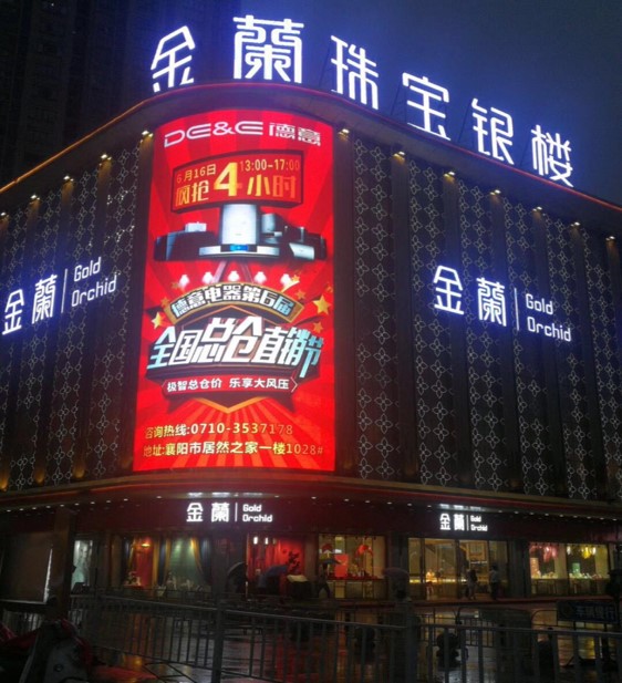 金蘭珠寶大廈LED彩屏采用我國制造LED最大上市公司最優(yōu)質(zhì)的產(chǎn)品,高亮度,高灰度,色彩艷麗又極具柔和性,廣告沖擊力強,媒介傳播快捷,受眾面廣。