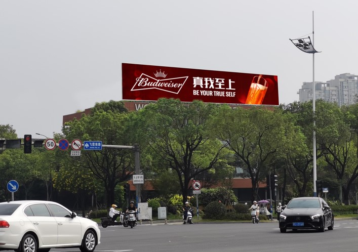 該大屏位于溫州錦繡路與飛霞南路交匯處東方健身中心樓頂,毗鄰溫州地標(biāo)置信廣場(chǎng)、威斯汀大酒店、南塘新天地綜合體廣場(chǎng)、溫州最大白鹿洲城市公園。