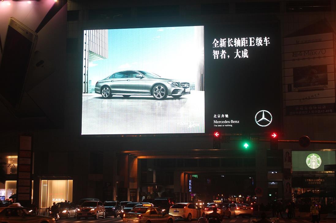 此LED顯示屏位于離地8M的高度, 視覺角度已作最合理調(diào)整,有著最佳的視覺角度,視距可達(dá)500M以上;整潔的廣告環(huán)境使此LED廣告屏成為唯一一個(gè)可以給受眾人群帶來巨大視覺沖擊效果的廣告媒體。