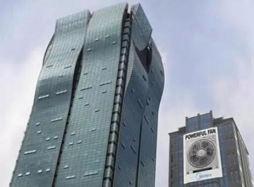 上海有個比較著名的建筑物,它的造型獨(dú)特別致,在建筑物的頂部素采用的是凸出的弧形元素,看上去像是波浪的形狀,美的公司把廣告交給了斐思態(tài)廣告公,此公司在建筑物的對面貼置了非常大型的美的風(fēng)扇的廣告牌,和弧形的建筑物頂部相對,讓人看上去就像是美的風(fēng)扇把建筑物吹了起來。讓人直接感受到美的風(fēng)扇的超強(qiáng)風(fēng)力。