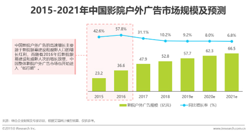 根據(jù)艾瑞咨詢數(shù)據(jù)顯示,2018年中國影院戶外廣告市場規(guī)模達52.8億元,同比增長率為10.2%。中國影院戶外廣告市場將逐漸進入增長放緩的“低行期”。隨著院線的收縮與整合,以及影院建設(shè)的結(jié)構(gòu)調(diào)整,未來一線城市頭部影院銀幕資源將愈發(fā)稀缺,影院戶外媒體公司競爭壓力變大。一方面,頭部影院資源將成為戶外媒體公司的核心競爭壁壘,另一方面,四五線城市將為影院廣告市場提供更多新的發(fā)展機會。