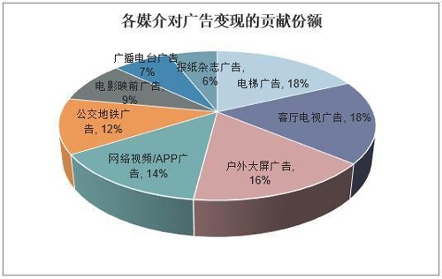 移動互聯(lián)網(wǎng)時代,隨著經(jīng)濟的快速發(fā)展,各種新型廣告媒體不斷涌現(xiàn),電梯在保留原有功能的同時也逐步被廣告"收編",據(jù)統(tǒng)計,電梯廣告的消費者主動關(guān)注度,遠高于互聯(lián)網(wǎng)廣告和電視廣告,從各廣告媒介對廣告變現(xiàn)的貢獻程度來看,近年來電梯廣告發(fā)展迅速,已成為廣告變現(xiàn)的關(guān)鍵一環(huán),廣告變現(xiàn)貢獻份額占比達18%。