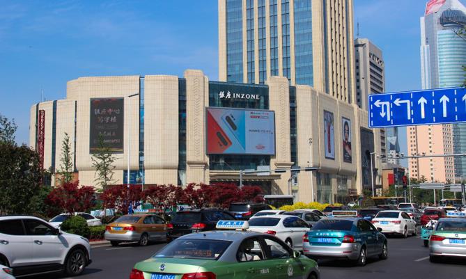 青島戶外LED屏廣告:香港中路銀座商城墻體戶外LED屏廣告