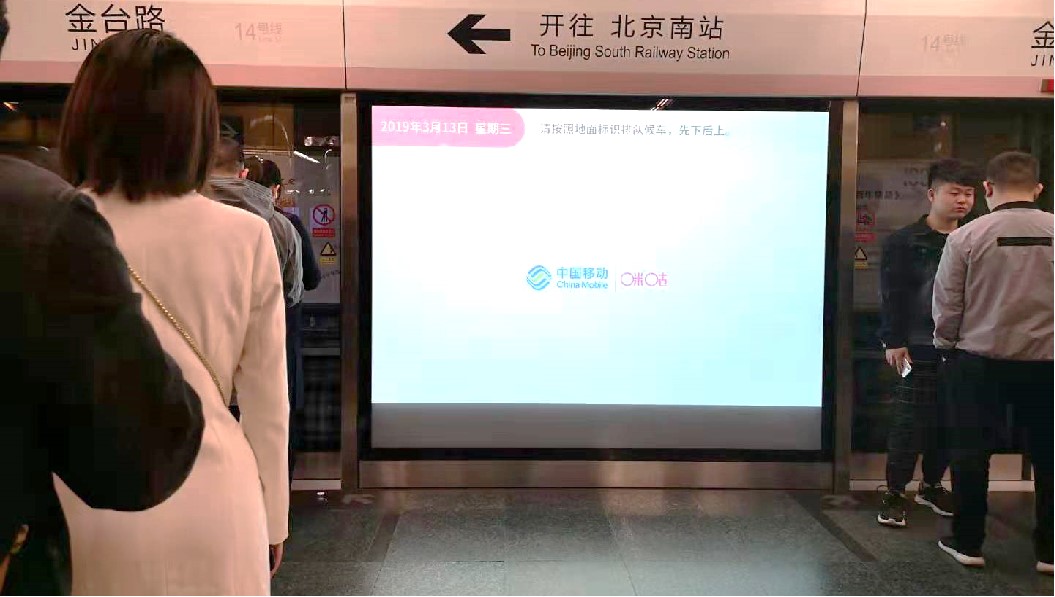 14號(hào)線媒體點(diǎn)位:望京、大望路、金臺(tái)路、九龍山(4個(gè)站點(diǎn),每站4塊,16塊屏蔽門(mén)投影)