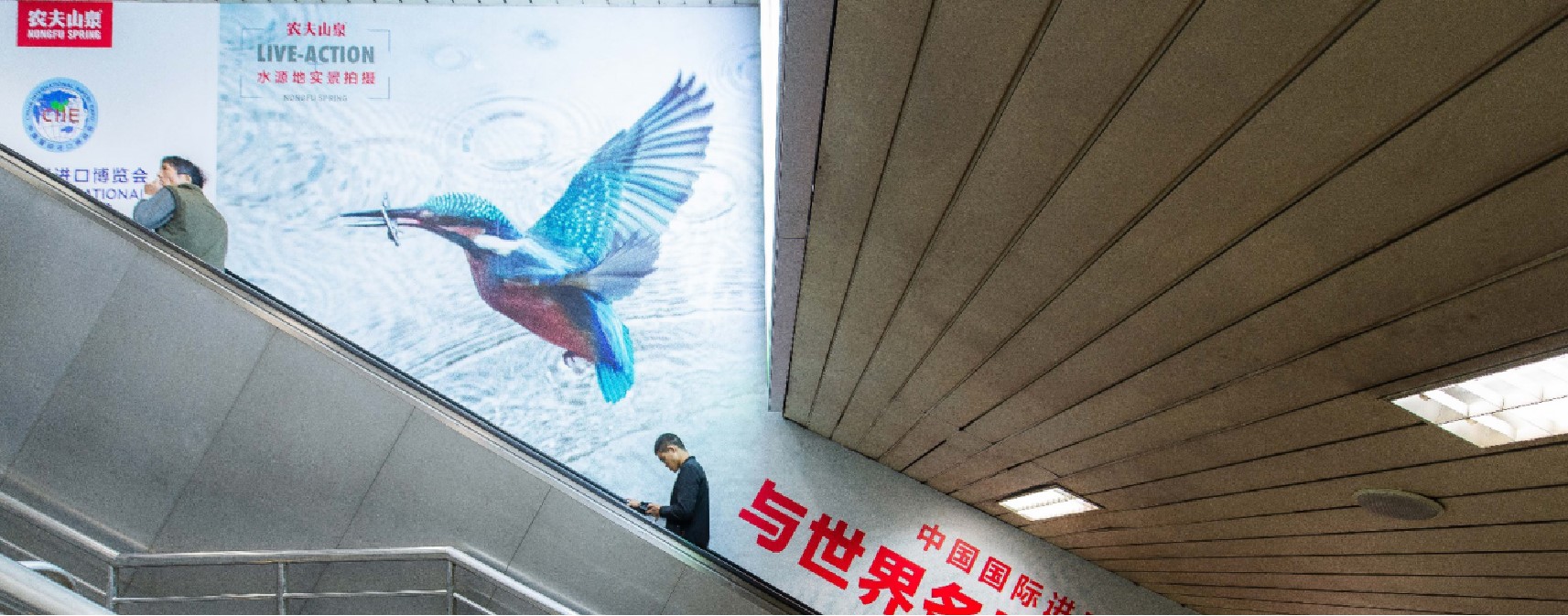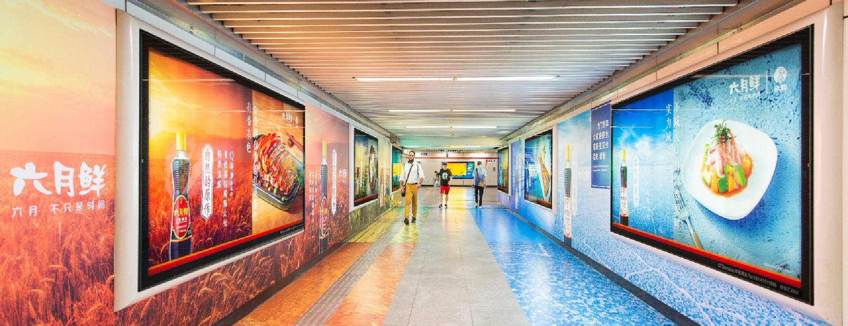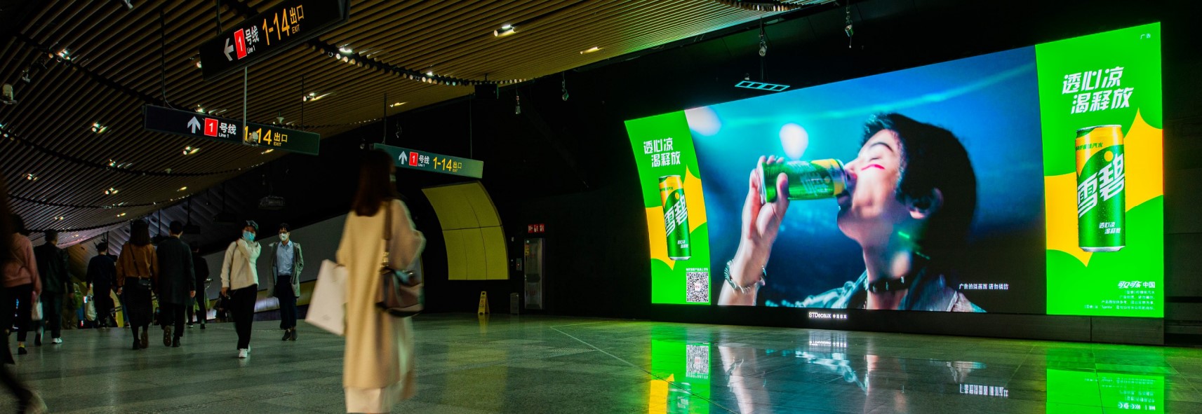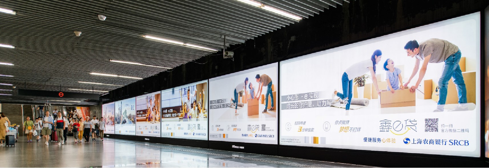 由 電子屏 與 超級動感燈箱,相互交錯組成的電子媒體通道,大面積的靜態(tài)海報與高精度的動態(tài)畫面不斷沖擊乘客視覺;頂部天花板與通道內(nèi)柱體的鏡面環(huán)境設計從空間上帶來沉浸式的3D體驗;每個區(qū)域的定向音響環(huán)繞聲系統(tǒng) 從聽覺上刺激乘客的感官體驗 ,日均客流達55萬*人次 支持動畫、TVC、電子海報等,可制作各種大型創(chuàng)意效果