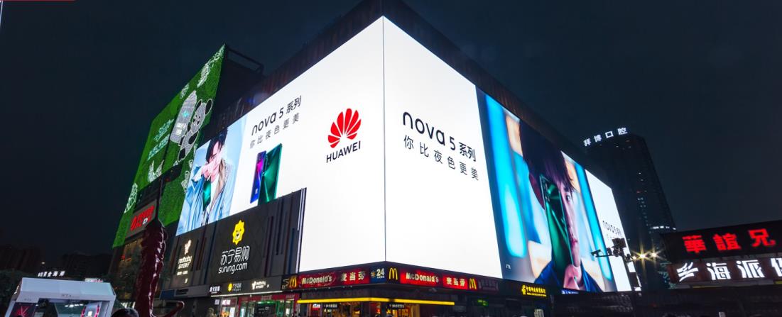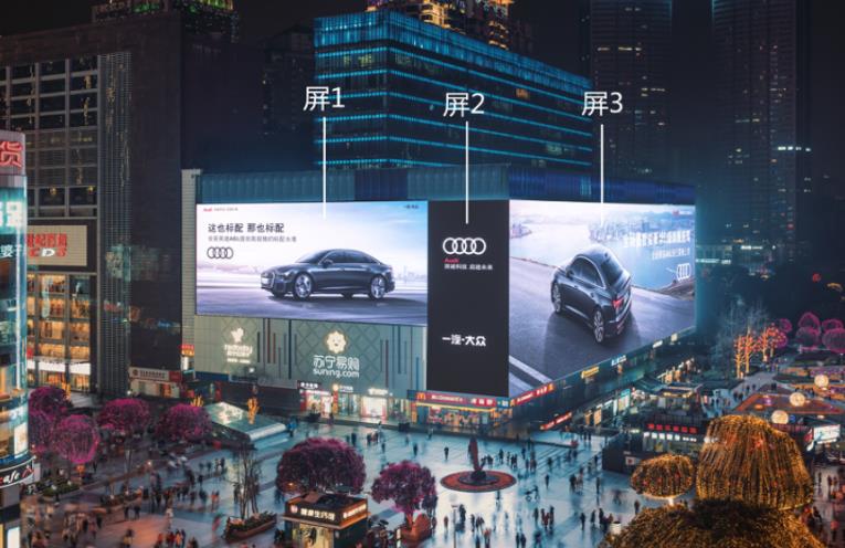 高顏值:融入建筑美學(xué)與商圈環(huán)境,使用高精度屏體一展都市繁華;區(qū)別于其他地標(biāo)展現(xiàn)形成受限,大屏方正,視野處于行人的觀看最佳區(qū)域,帶給目標(biāo)受眾更具沉浸式的體驗,更能完美呈現(xiàn)品牌客戶的動態(tài)視頻和靜態(tài)畫面。