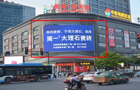 該媒體位于星沙開元路與天華路交匯處星沙第一高樓開源鑫貿(mào)裙樓墻面,位于星沙城區(qū)主要交通樞紐